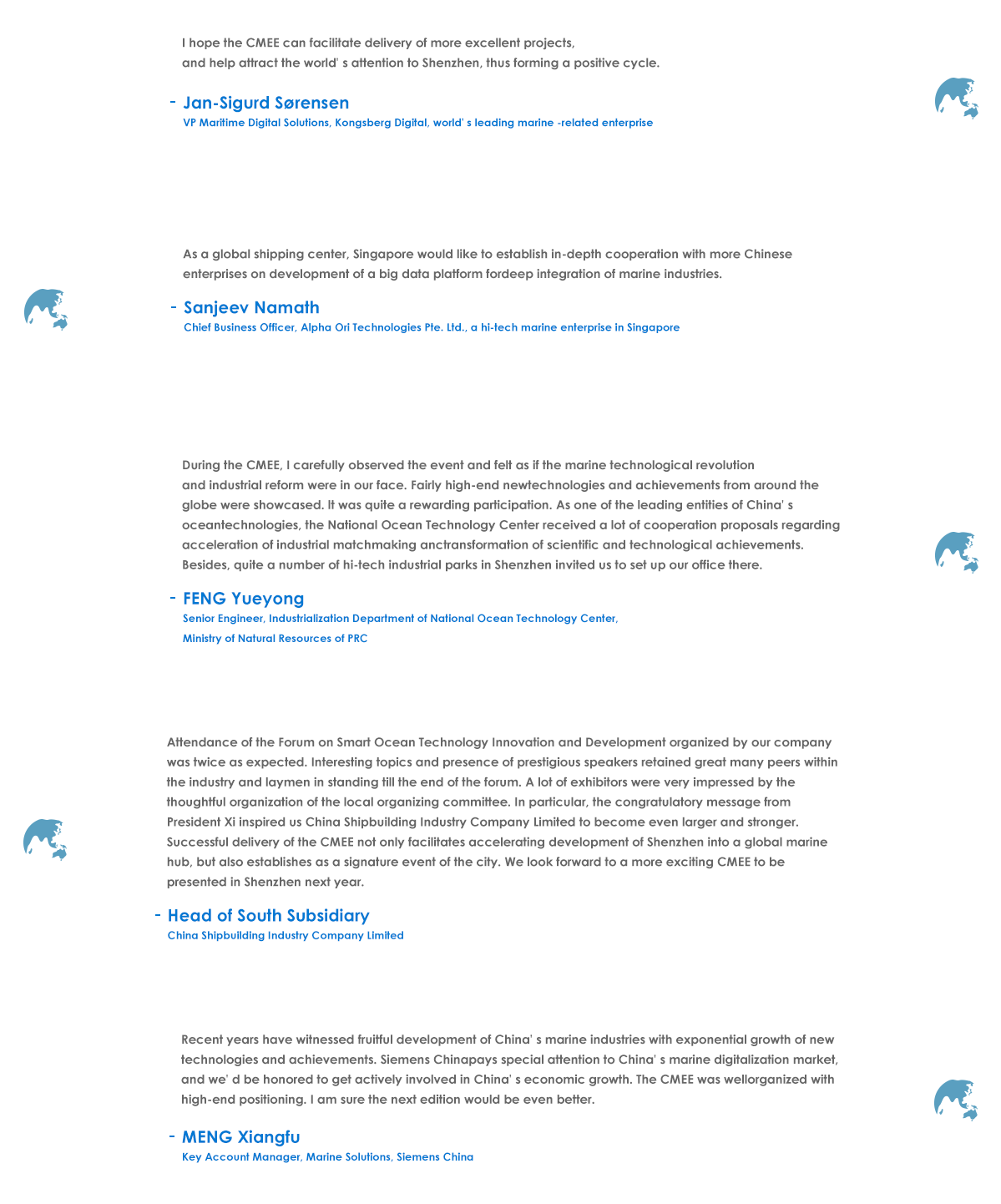 The 2020 edition will focus on shipbuilding and port shipping, marine resources development, high-end offshore equipment, marine electronic information,marine biological medicine and marine conservation and safety, during which cutting edge marine technologies and equipment from home and abroad will beexhibited, and forums as well as other activities will be held concurrently;